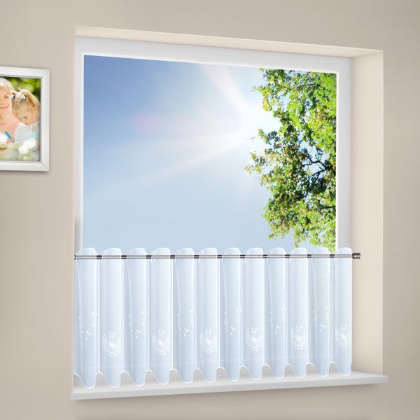 Das halbtransparente und mit floralen Stickereien bezogene Bistro wird umgehend zu einem echten Blickfang und lässt sich perfekt zu jedem Einrichtungsstil kombinieren. Die gesamte Bistro Struktur wirkt interessant und kann modern und klassisch kombiniert werden. Die Scheibengardine mit Stangendurchzug ist mit Hilfe einer Scheiben-/ oder Vitragenstange leicht aufzuhängen. Zusätzlich passt sie durch die unterschiedlichen Maße perfekt zu jedem Fenster.