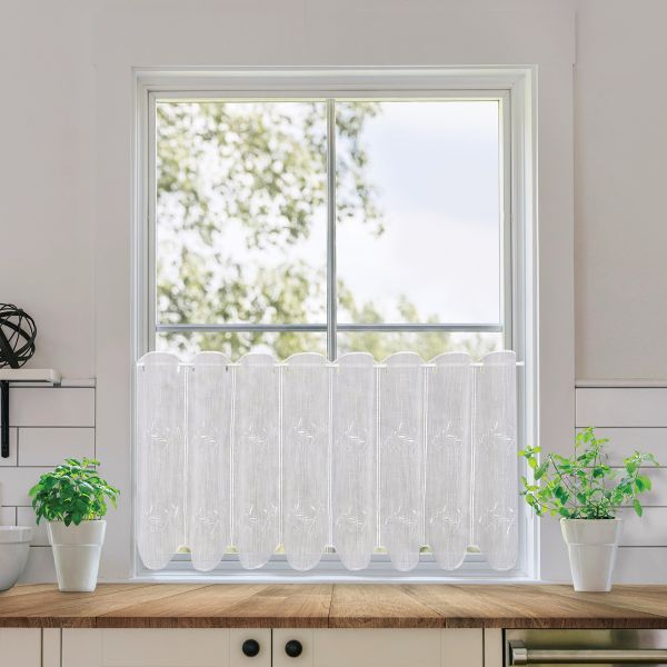 Das transparente und schlichte Bistro wird umgehend zu einem echten Blickfang und lässt sich perfekt zu jedem Einrichtungsstil kombinieren. Die gesamte Bistro Struktur wirkt interessant und kann modern und klassisch kombiniert werden. Die Scheibengardine mit Stangendurchzug ist mit Hilfe einer Scheiben-/ oder Vitragenstange leicht aufzuhängen. Zusätzlich passt sie durch die unterschiedlichen Maße perfekt zu jedem Fenster.