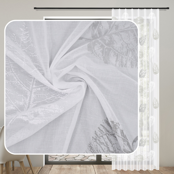 transparenter Voile mit elegante Blatt Muster in grau