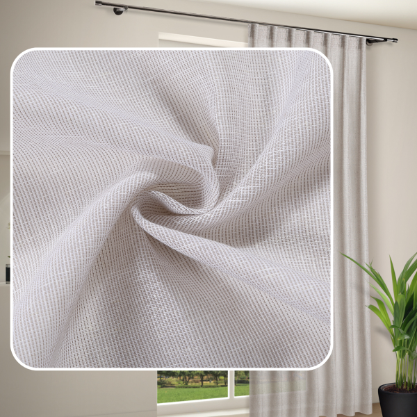 Beschreibung / Halbtransparente Maßgardine Linea taupe