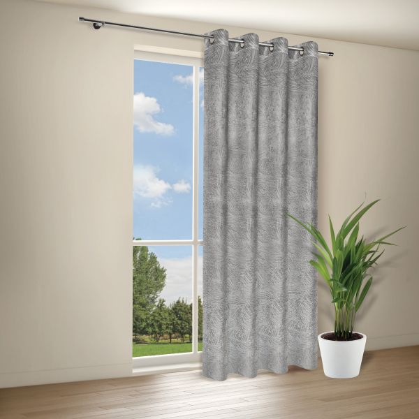 Der Ösenschal besteht aus einem festen Stoff mit leicht glänzender Oberfläche, von welcher sich die aufgedruckten Farne gekonnt abheben. Dank des dichten Stoffes wirkt der Vorhang wärmespeichernd und schallisolierend. Die beschichtete Rückseite sorgt dafür, dass der Ösenschal die Räume leicht abdunkelt.