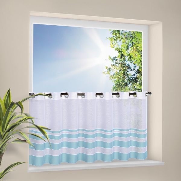Die Gardine misst in der Breite 140 cm und in der Höhe 50 cm.