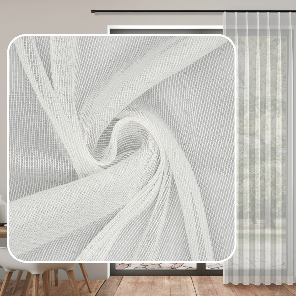 Transparente Maßgardine Daniel creme – moderne Netzstruktur im warmen Tageslicht